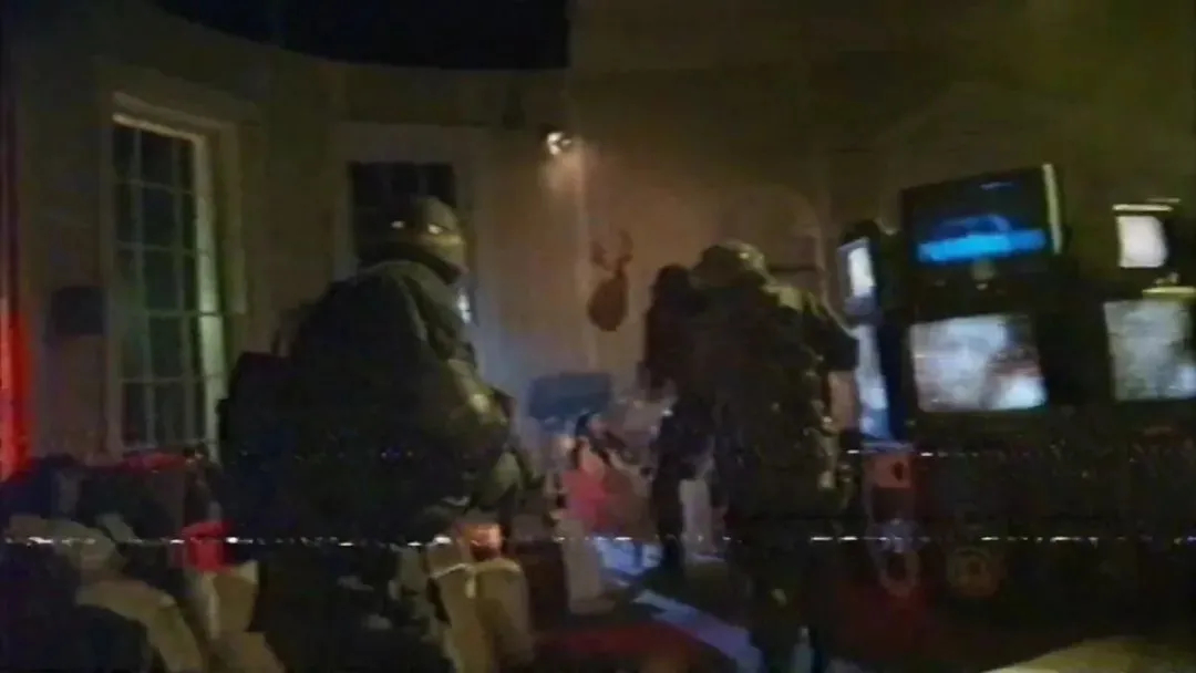 小队成员在待命过程中,开始看电视上播放的录像。