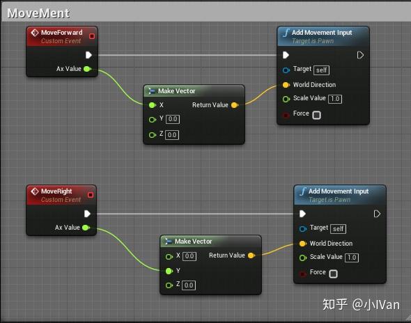 新建两个CustomEvent,分别取名叫MoveForward和MoveRight,然后调用移动命令