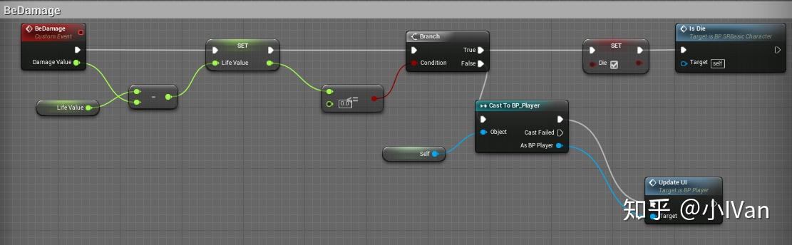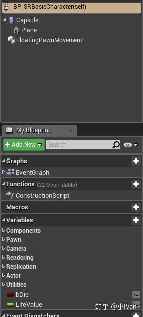然后新建两个变量,一个bDie用来判断角色是否死亡,一个LiveValue,角色的血量