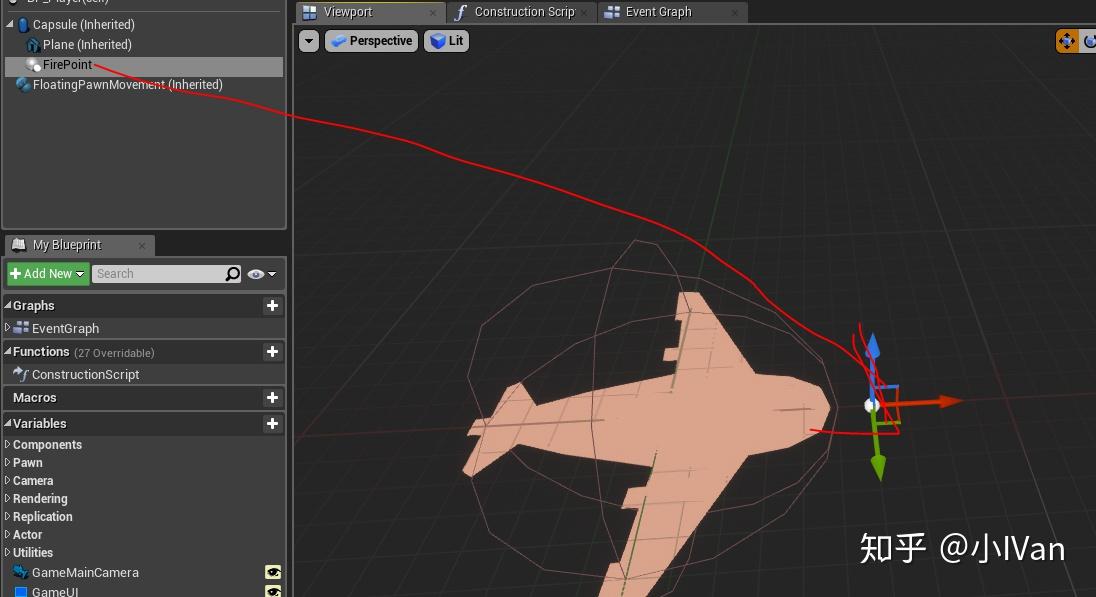 我们新家一个SceneComponent然后把它移动到合适位置,作为我们发射子弹的点