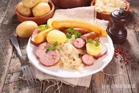 酸菜腌肉香肠锅不过是酸包菜上摆满猪肩肉、猪腰肉、猪蹄、厚切培根、冷熏肉、各式各样的香肠,可以说相当接地气了。这样的法餐还能再德国一点嘛?Anyway,看起来还是很好吃的,写得我都饿了,“请再给我上杯兰德博格啤酒(德国第一啤酒品牌)”,溜了溜了。