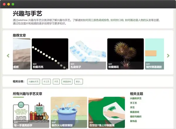 wikiHow涵盖的话题有艺术、计算机、教育、家庭生活、人机关系和运动等 17个类别 ,可以说照顾到了人们生活的方方面面。