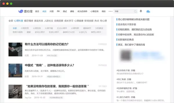 在壹心理的 心理科普 板块,你可以看到心理学这门学科的多个分支,包含社会心理学、进化心理学和犯罪心理学等,每个分支下面聚合了多篇相关的文章,读起来不会显得晦涩难懂。