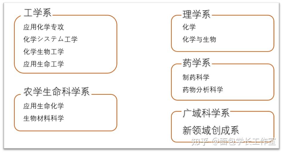由于大部分同学并不了解日本院校的极其复杂的专业分类,绝大部分的同学只去考化学与材料专业,导致这两个专业的进学通道异常拥挤。除了化学系与材料系以外,化学出身同学们仍然可以选择一下的几个学院:
