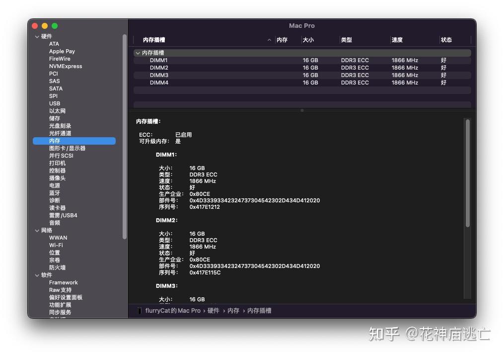接着就是RAM内存升级,我这次直接升级64G官网最高配置。 也是翻看了Apple的论坛和国外的ebay,确定了单条16G 14900R ECC内存 * 4 即可。当我去某鱼购买的时候,来故事了:卖家说,你的mac pro 原厂是14900E 内存,不能使用带Register的内存,我这有果子专用的,加点钱就好了。