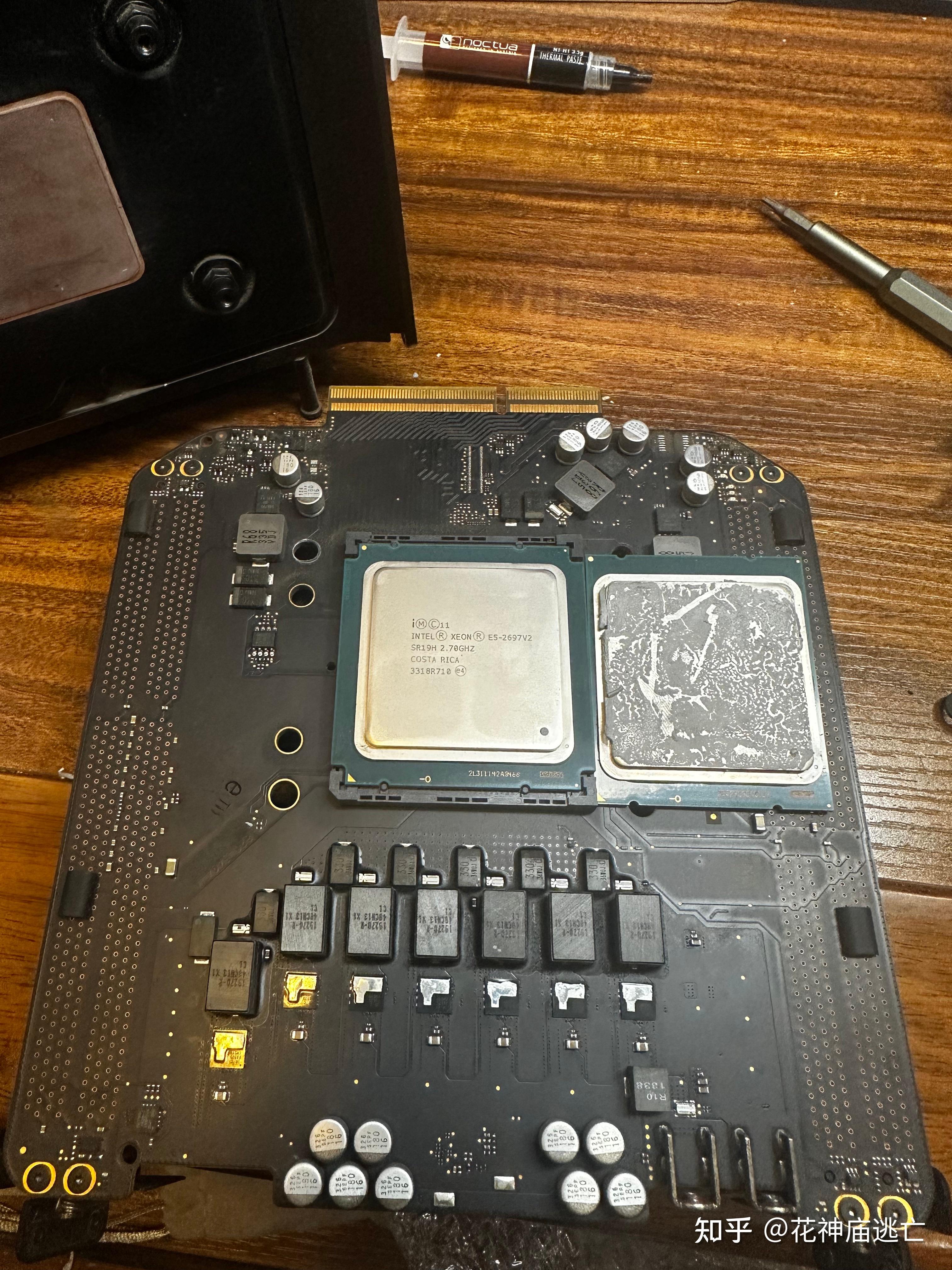 关于CPU升级,一步到位Xeon 2697V2 12核心24线程,最高睿频3.5Ghz,首发价2618USD,估计当时Apple网站选配再隔几刀收你个4000刀不为过吧。