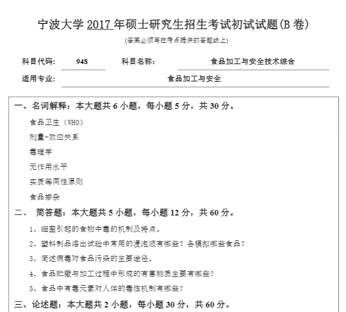 食品加工与安全考研院校排名及考研难度分析