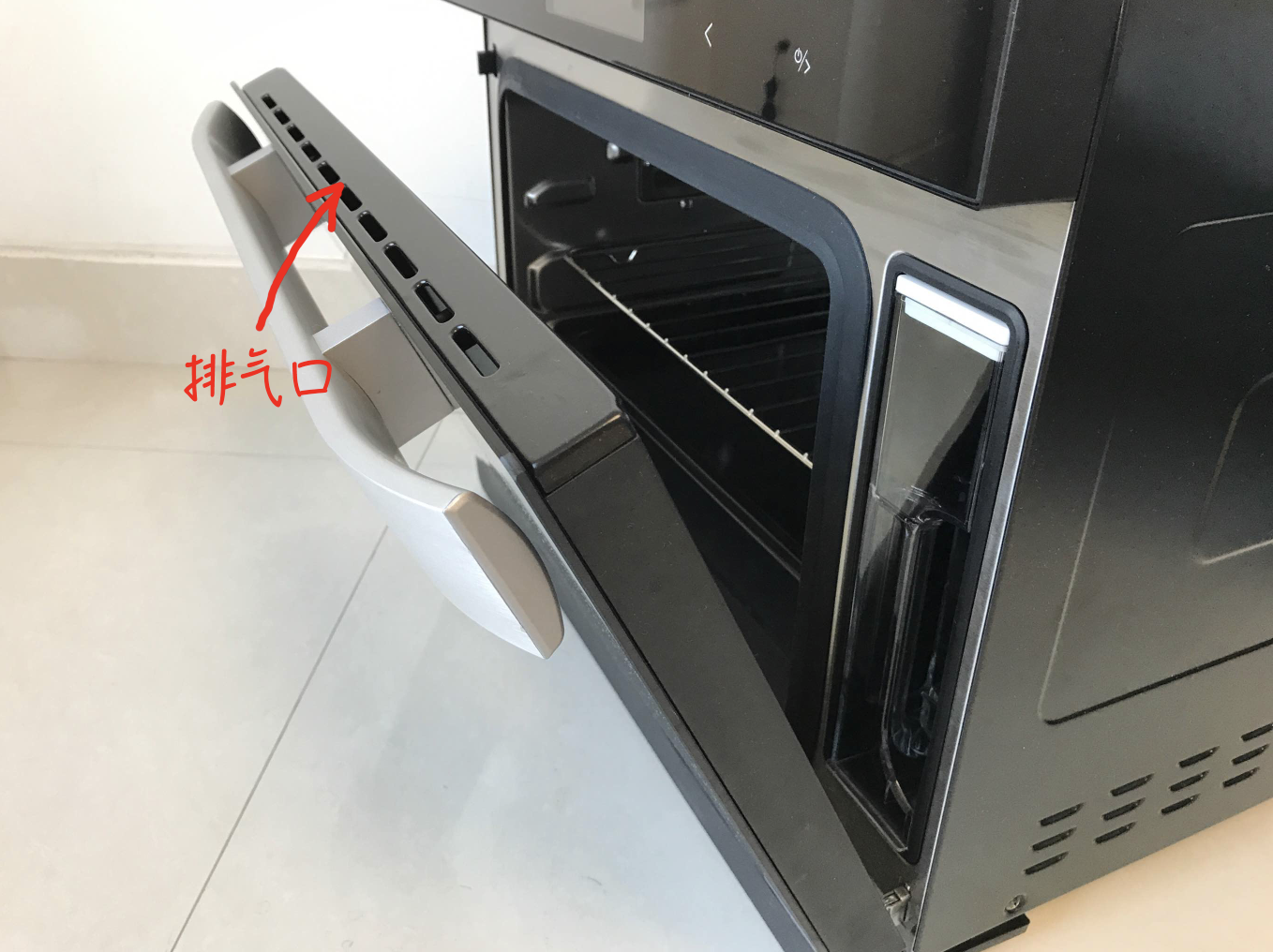 ▲蒸烤箱门内的水箱