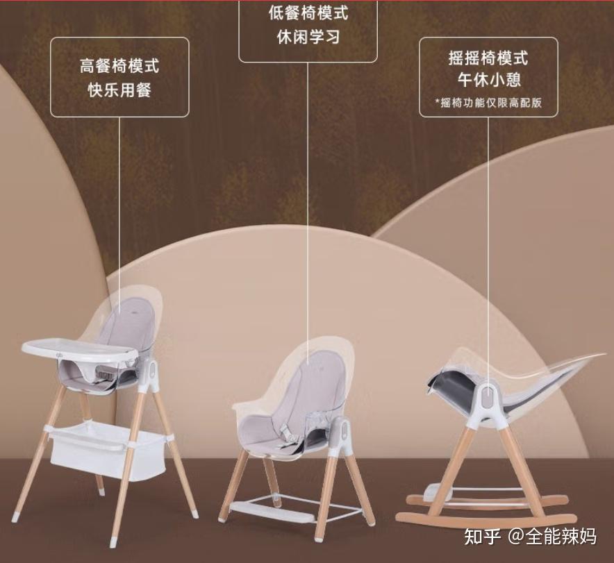 市面上部分多功能宝宝餐椅有以下功能:可调节椅背、脚踏板、高度、拆卸成便捷式餐椅。