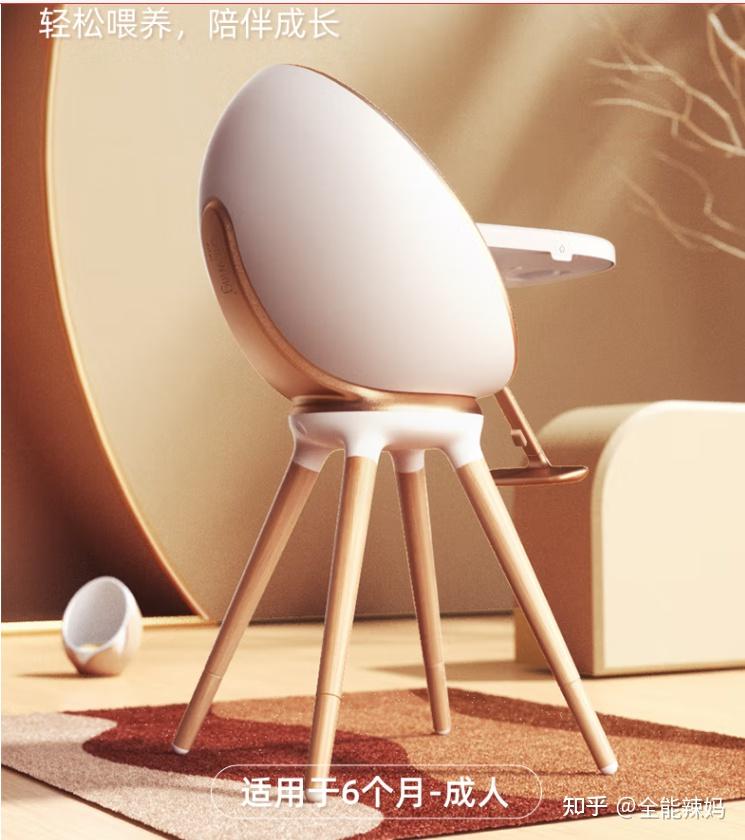 不同于市面上多见的北欧风、ins风等风格,Bebebus的产品在设计上主打的是国潮+现代主义的混合风格,其儿童餐椅成长家也不例外。作为Bebebus旗下唯一的餐椅产品,成长家的设计与市面上的主流产品完全不同,由纯白色和玫瑰金两种颜色组成,蛋壳状的座位搭配上纯木质的四足,整体显得相当有科技感