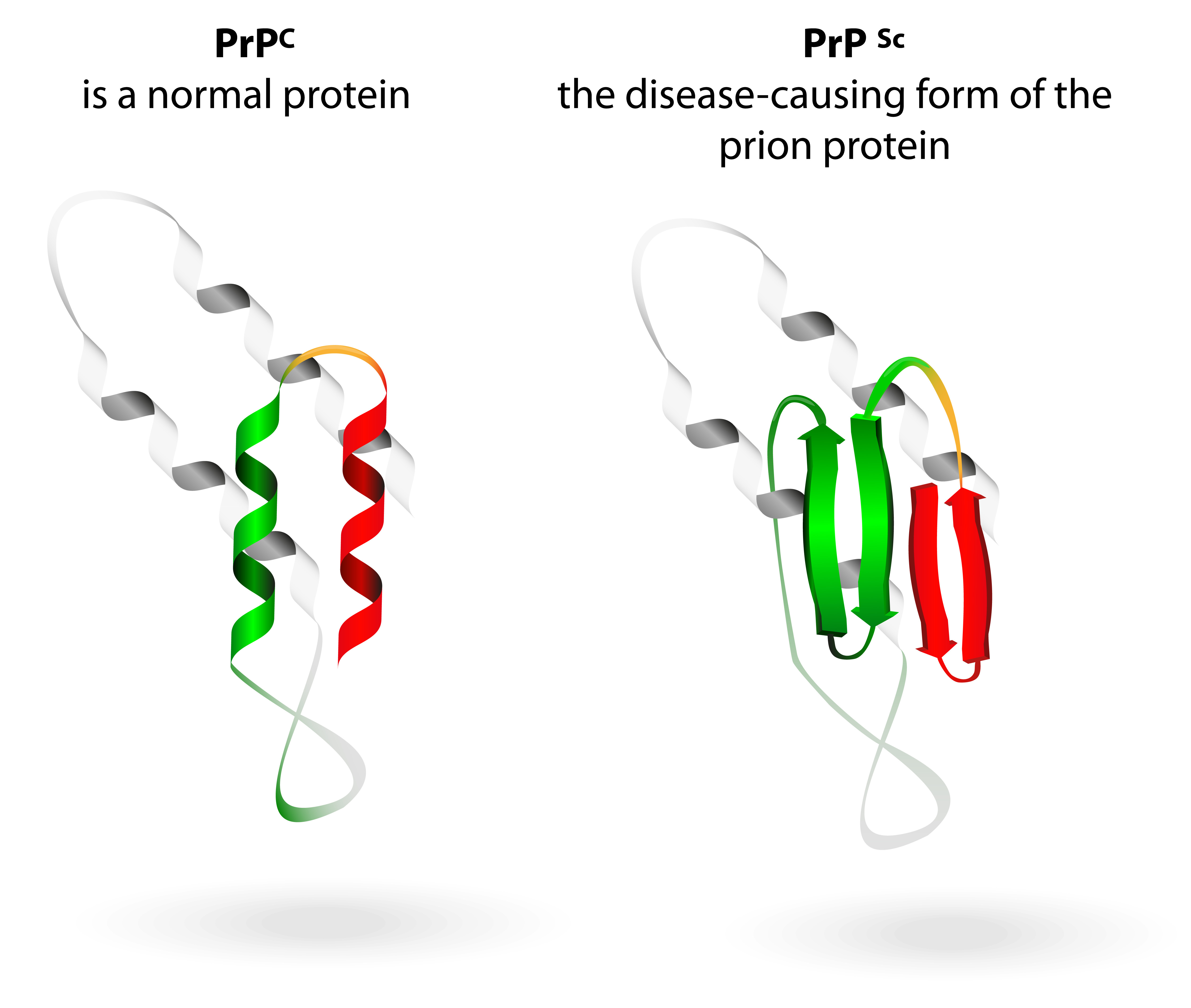 这是因为朊病毒的本质其实是 错误折叠 的朊蛋白(prp)。这是一种常见于神经元中的蛋白质,和可能导致老年痴呆的β-amyloid一样,我们并不知道它到底有什么用。曾经有学者把小鼠脑子里的朊蛋白通过转基因的方式给消除了,然而小鼠并没有表现出非常不一样的地方。