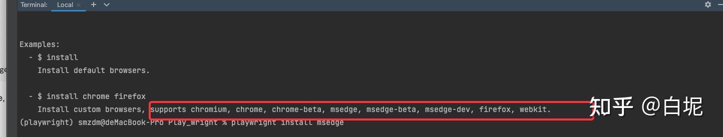 使用 playwright install 命令默认会安装chromium,firefox 和 webkit 三个浏览器。 可以通过 playwright -h 命令查看目前支持的浏览器