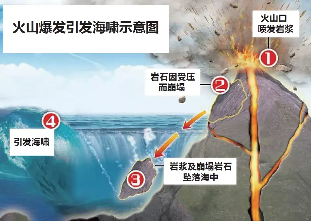 图5 火山爆发引发海啸示意图(图片来自网络)