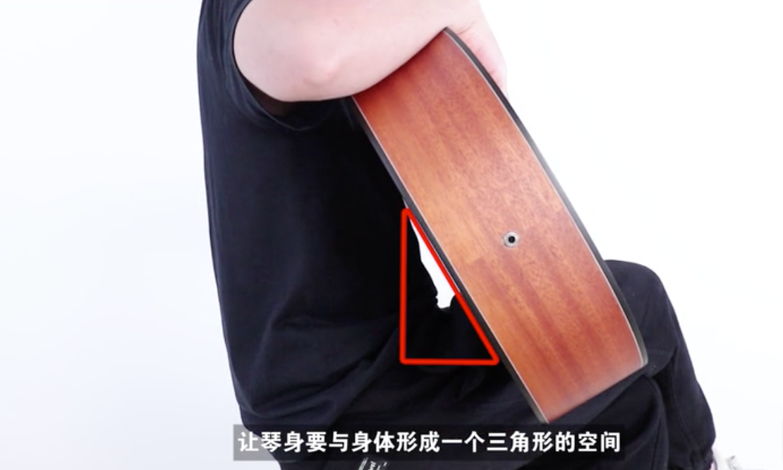 - 琴身大圆部分上侧弧度,把右臂肘关节轻轻放在上面。