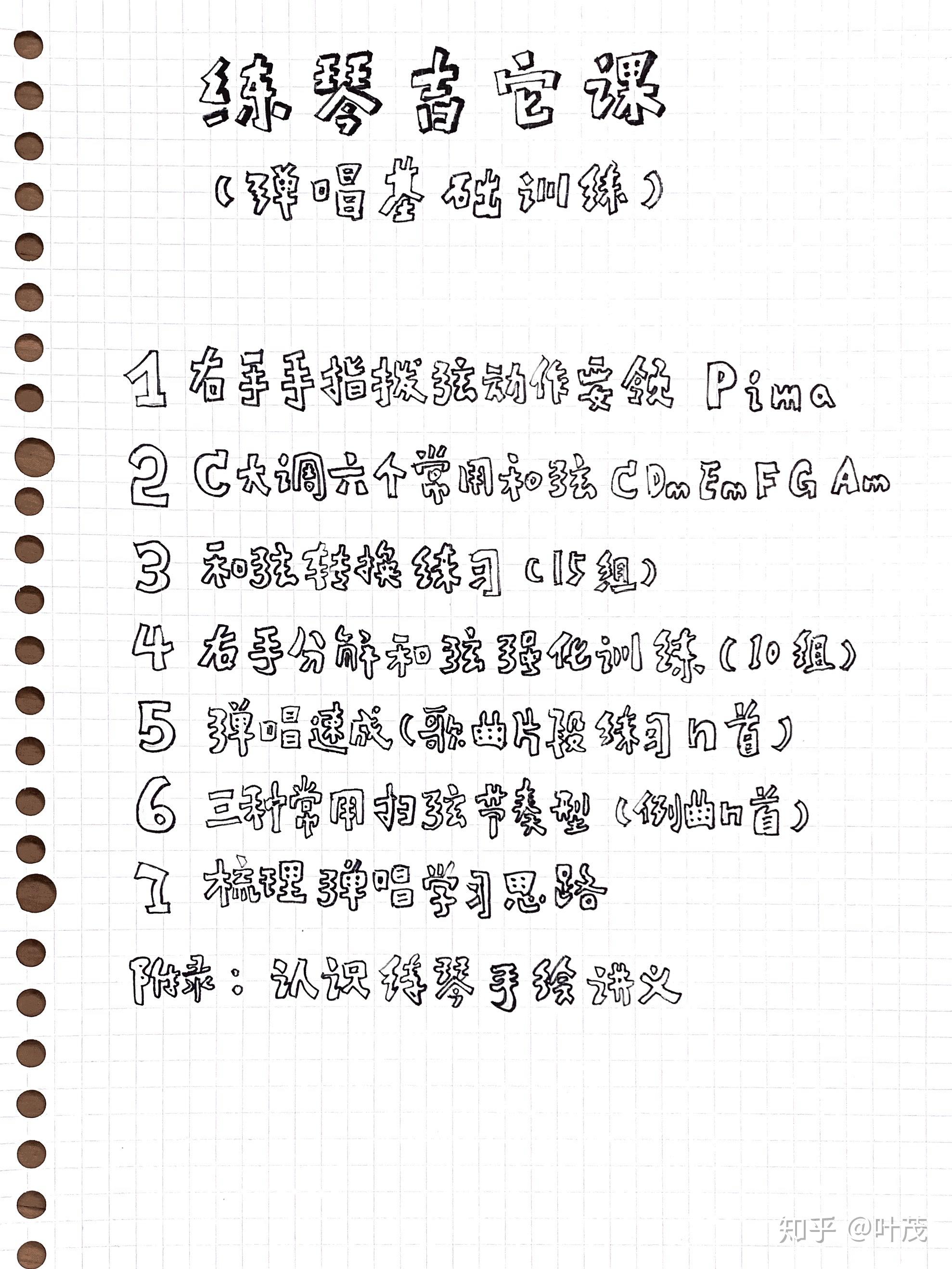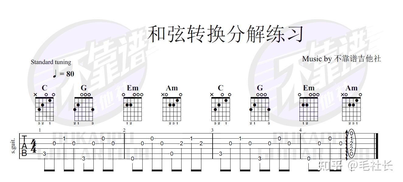 和弦练习主要在于和弦的转换练习,我给大家一张和弦转换练习谱子大家可以按照这个谱子来练习