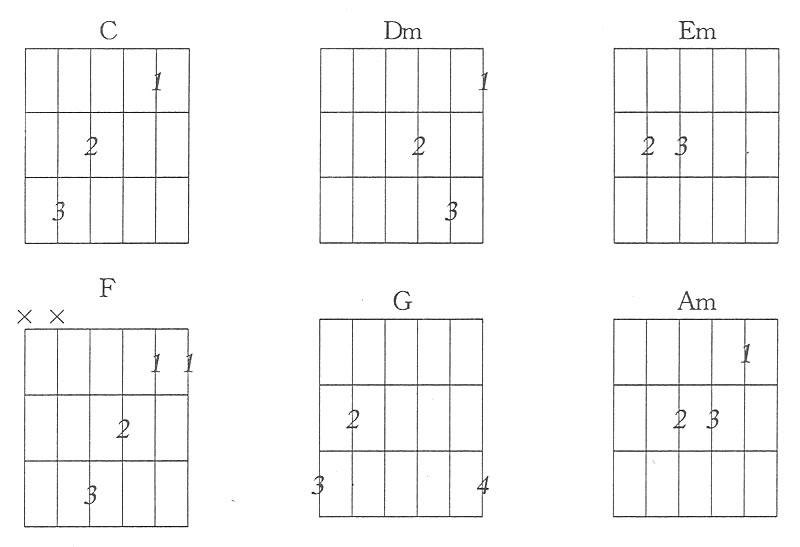 你只需要用到C、G、Am、Em、F这五个常用和弦。一般而言初学者都会从这几个和弦开始练习哦而这里面唯一的难点可能就是小F了