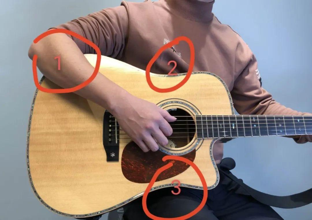 * 达到 “三点支撑” 可以让我们非常稳定的把吉他放在自己的身上