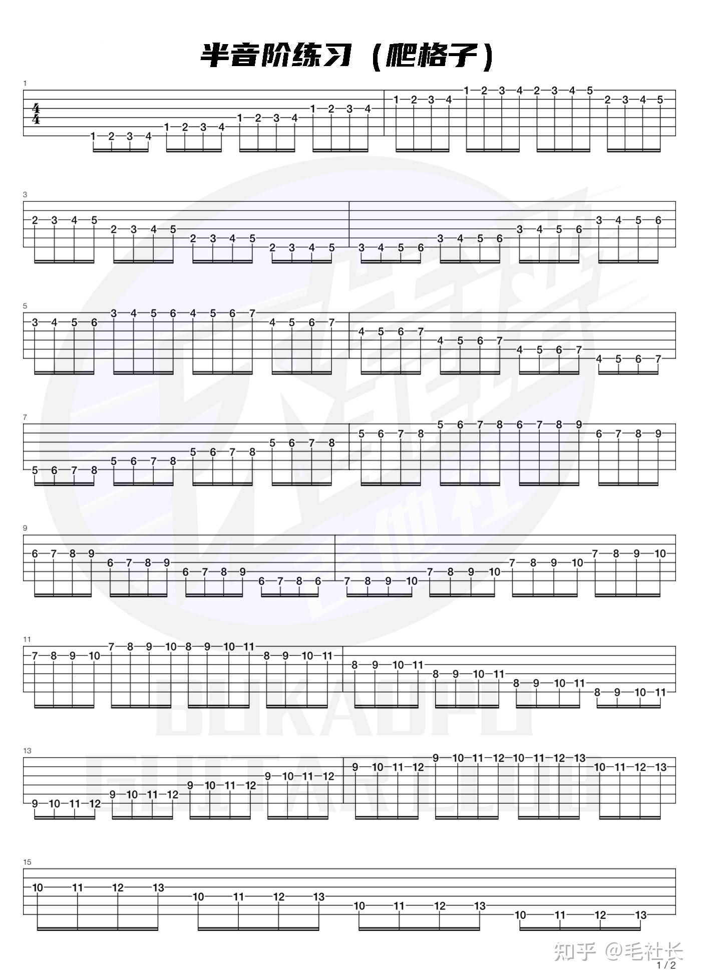 爬格子练习会比较枯燥,但对左手的跨度练习非常重要,也是帮助你后期按和弦打基础的。不用看其他的爬格子谱子了,就按照我给的以下谱子练习就可以,爬格子的目的就是练手指跨度,所以就按照我这个来练,晚上爬格子的练习内容太多,鱼龙混杂的,就按我这个练习,心无杂念。节拍器可以放慢到100来练习