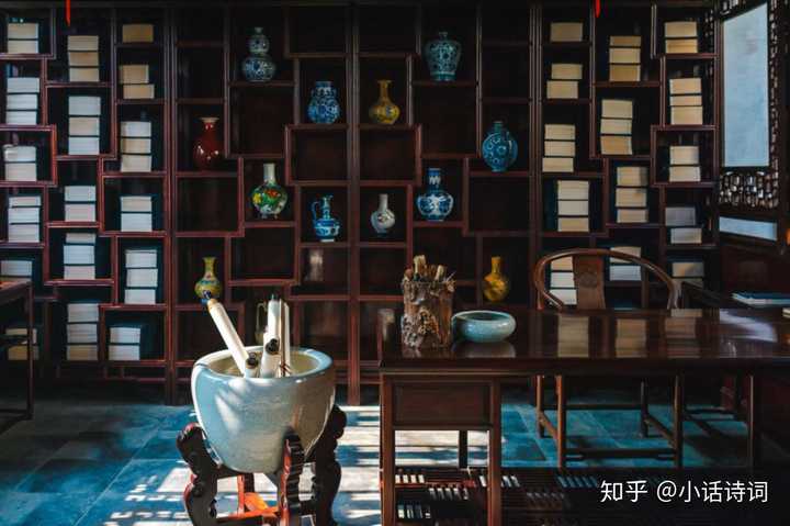 开篇句就是对书房内景的描写,随着词人笔墨的流淌,书房的陈设出现在人们的眼前,这犹如电影里的一个不断切换的精致的画面一样,每一帧是这么的 古色古香,古朴典雅 。