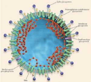 - 呈球形或椭圆形,具有多形性,有囊膜、基因组为线性单股正链