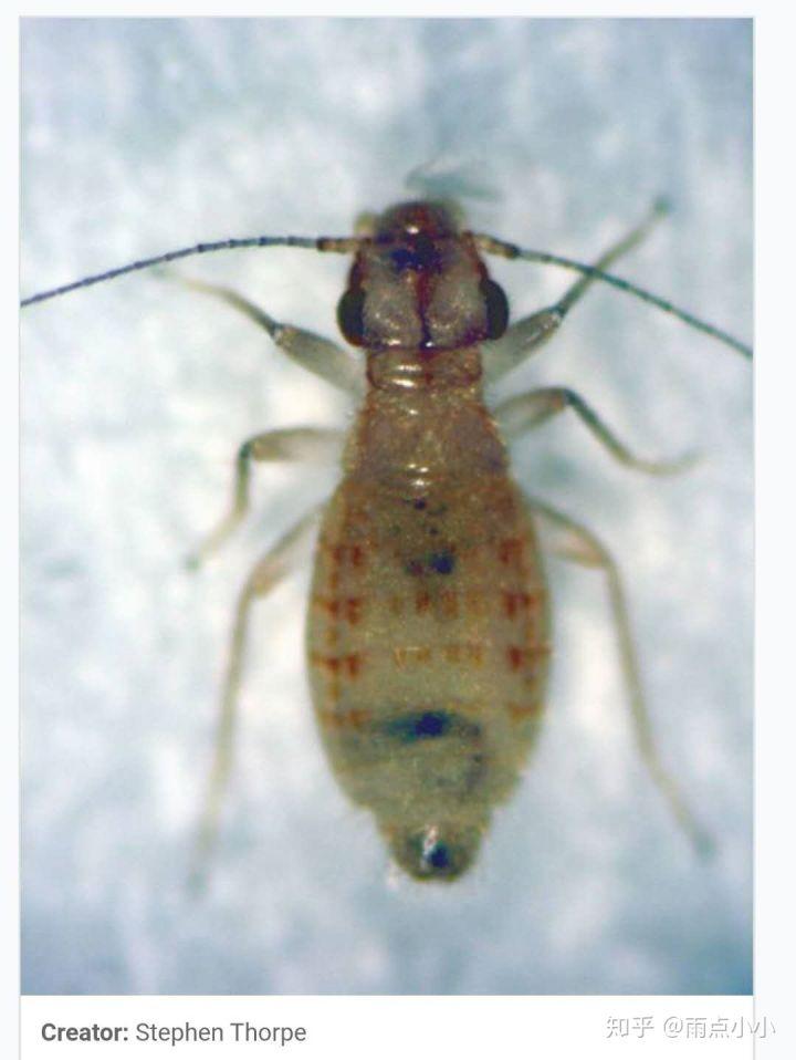 体长4~20mm,狭长,触角长丝状,卵椭圆形,长0.8mm,白色,行动迅速敏捷,灭杀困难。