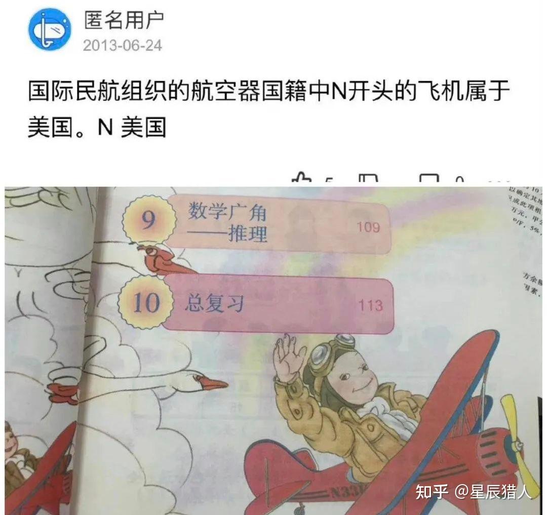 人教版的数学教材部分插画,“丁丁”、“纹身”、“兔女郎”、“星条旗