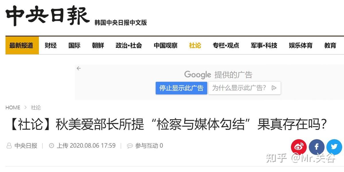 韩国媒体坐不住了,韩国中央日报发表社论,矛头直指秋美爱任人唯亲,迫害尹熙悦检察长。