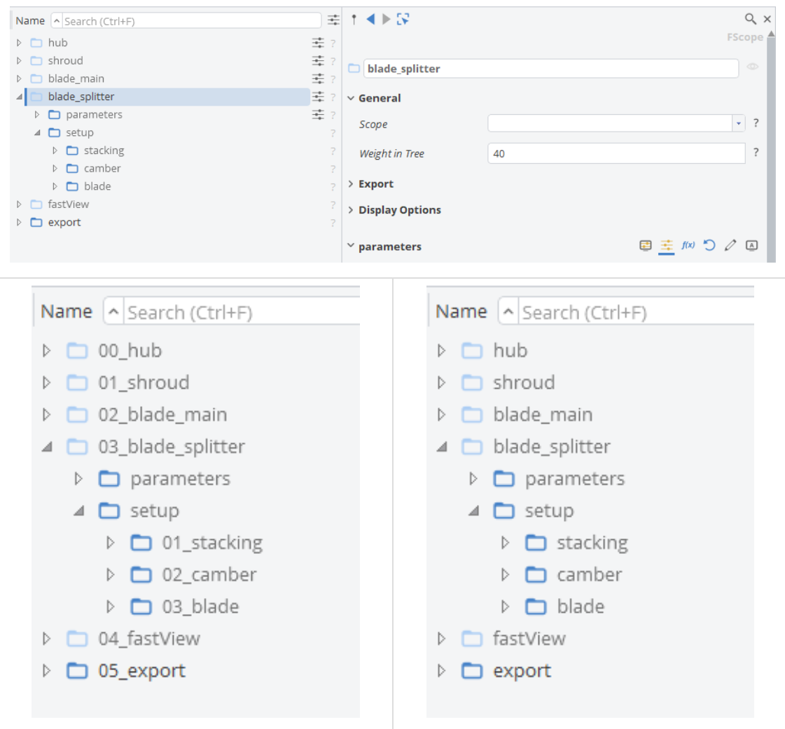 支持通过引入权重值来定义文件夹在模型树下的显示顺序,有助于用户按照自己喜好的顺序排列文件夹,而不是按字母顺序排序。因此,不再需要对文件夹进行编号。