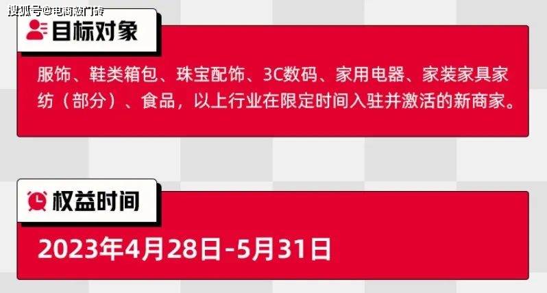 1、在2023年4月28日00:00:00—2023年5月31日23:59:59期间,成功提交入驻申请资料,并在2023年6月20日23:59:59前完成账号激活;