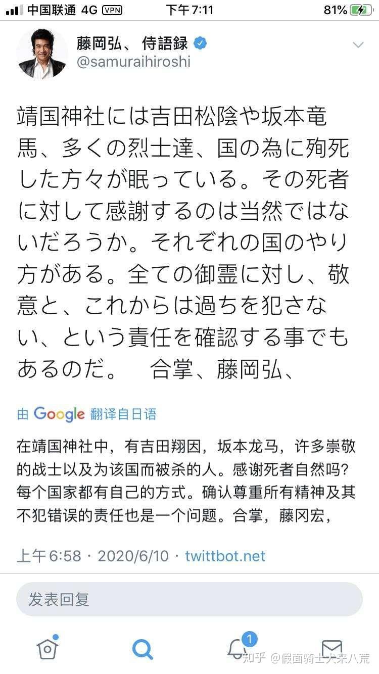 关于最近吧内疯传的对“藤冈弘支持首相参拜靖国神社”,我上推特上看了一下,情况确实属实,无需置疑。