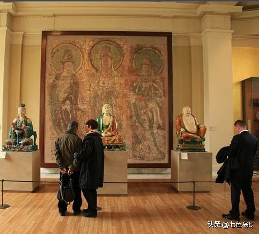 敦煌壁画涵盖550多个石窟,包括有各代人的壁画,超过50000平方米,这些壁画结合了各个朝代的宗教技巧,内容丰富,还有一些神话和传说。然而,从1856年到20世纪初,西方的许多偷盗者以探险的名义前去调查,然后采用切割成碎片的方式盗走了大量的壁画, 大英博物馆就有13幅壁画 。 是三大镇馆之宝之一。