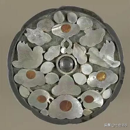 珍珠母嵌花青铜镜,唐朝,公元8-9世纪。