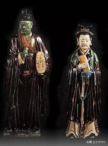 阴间判官俑,前面摆放着一组12个栩栩如生的陶俑,形制有人、兽以及人面兽身。它们都出土于中国河南唐朝名将刘延荀(约公元728年)墓穴中。最前边是一对兽俑,是队列中领头的神兽,也是墓葬的守护者,紧接着是一对人形陶俑,后随之两个严肃的陶俑官员,双手毕恭毕敬地交叠。队列中最后的人物形象是两位马夫,之后是两匹高近一米的骏马和一对漂亮的对峰骆驼。