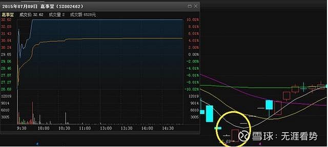 2015年7月9日,在上证个股002462( 嘉事堂 (002462)),主力在盘口打出1543的买入信号,而且持续的进行买入抄底,股价从跌停到快速涨停。