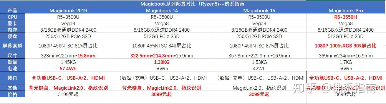 而这篇文章,就是为了解决这个问题,目前市场上在售的四款2019年的Magicbook锐龙版之间有什么区别,该怎么选。