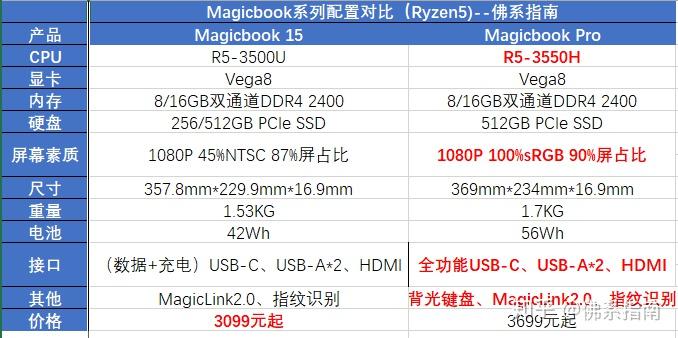 这题还是比较简单的,如果你不缺那600元预算,建议直接上16.1寸的Magicbook Pro,可以说全方位的碾压Magicbook 15(emmm至于那点重量增加,都这么大屏幕了)