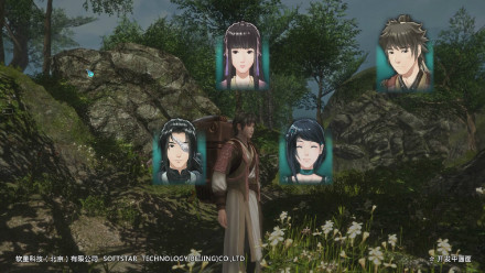 在一开始的时候,使用的是一般配置进行游戏,感觉和仙剑五画面差不多;随后我们调整到了最高配置,立刻感觉进入到一个完全不同的世界。画面中有着天空翱翔的飞鸟和缓慢飘过的白云,地上潺潺的流水和摇曳的树叶等细节。人物身上饰品会随着人物的行动而摆动,衣袖裙摆能体会到不同材质产生的不同的效果,比如明绣的服装就有种薄纱轻飘感,而昭言的武袍则更有厚重感。