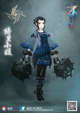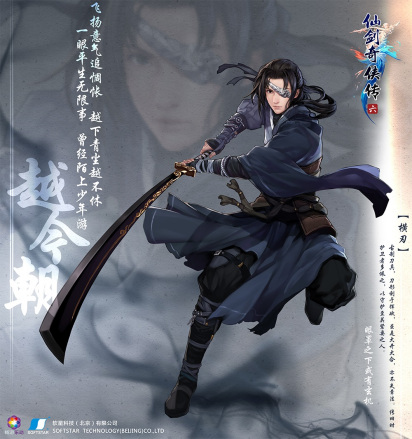 发型短而干练、面容清新;似有异禀,可凌空御物。越祈身旁无数蓝光环绕,似乎不单单是一种武器,并有着神秘的专属技能;历代仙剑人物中的武器多为实物,而越祈的“念剑”,顾名思义为因念成剑。一生一剑,适予一人。