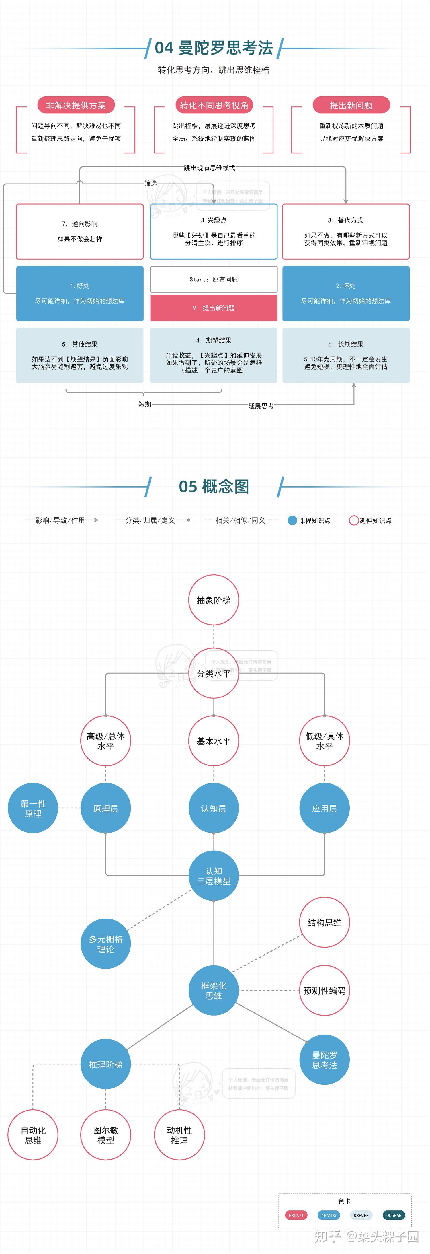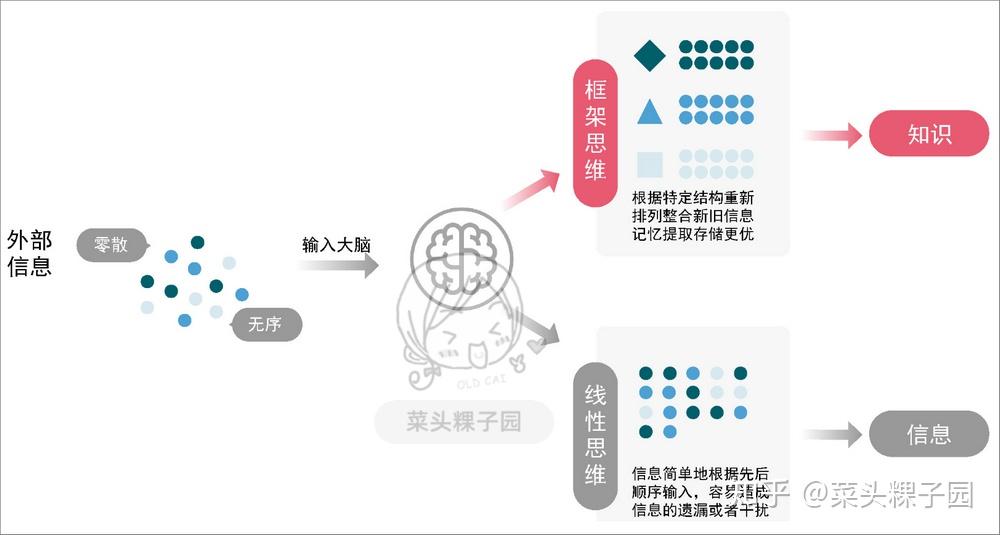 在 第二课 已经分享了框架化思维学习知识的重要性。简单来说,信息输入大脑后,需通过框架形成联系构建知识,不然就还是以零散的信息形式存在,很容易遗忘,所以很多人会觉得看书后就不记得内容。