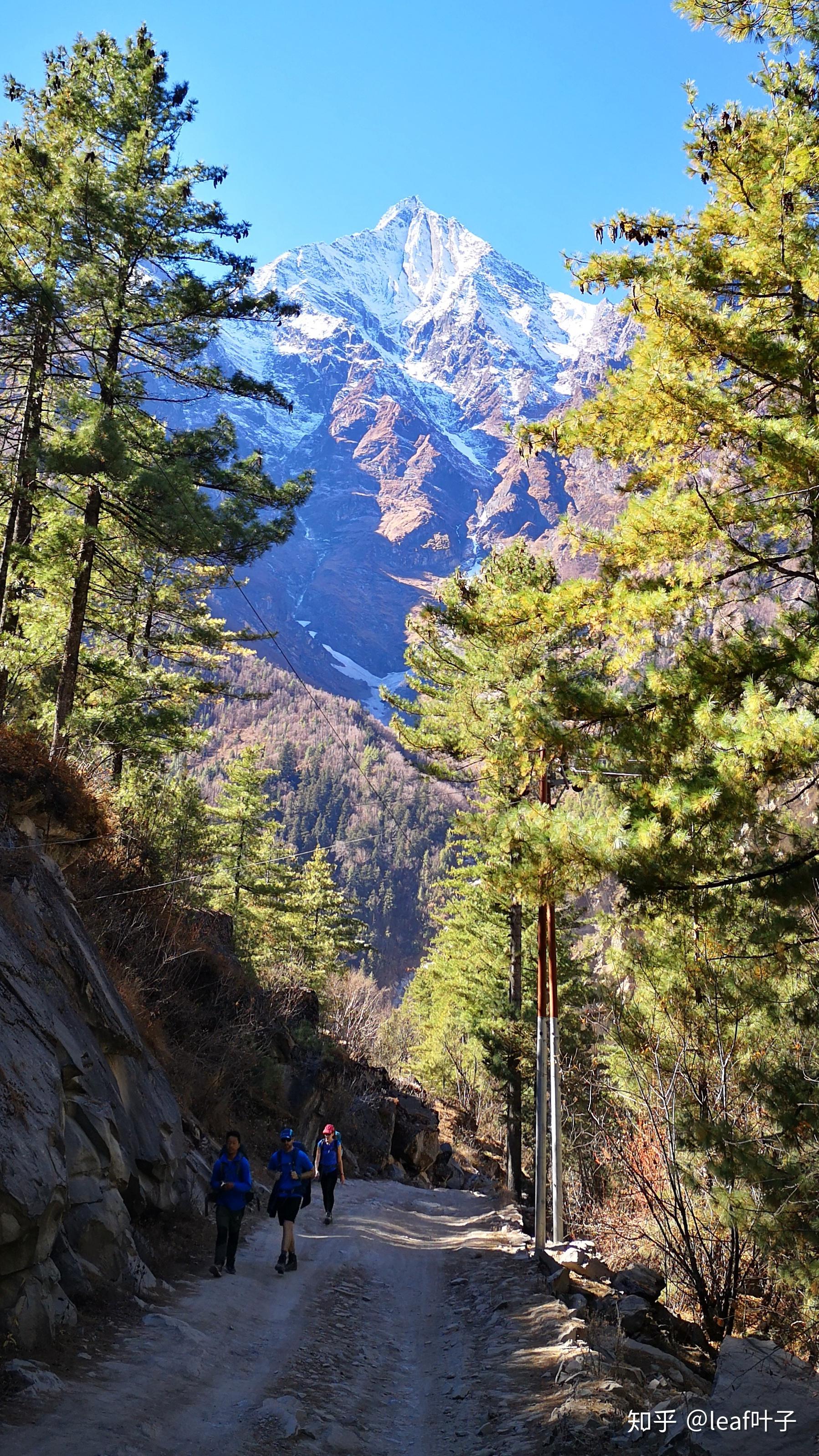 因为方位的原因,这里的日照金山并没有很明显,所以可以好好睡个懒觉。早餐后收拾妥当出发前往马南,清晨的村庄在炊烟的笼罩下变得云雾缭绕,阳光照射后像仙境一般,微风拂过,便飘散消失不见了。随着行程的行进,安娜普尔纳二峰逐渐隐在其他山体的后面,在三千多的这个海拔,山谷里满是常绿的松树,随处可见巨型的松果散落在地上。路上的各个队伍,或是十几人大团队,或是三三两两,大家不约而同的默默进行着一场无须分出胜负的“追逐赛”。