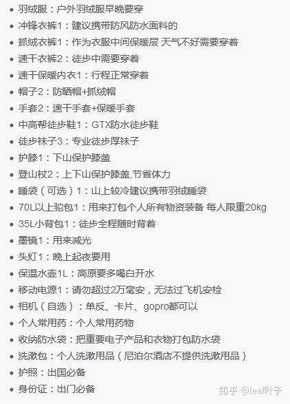 | 自己负重徒步,做好攻略。但是对于后半程海拔超三四千米地区的徒步活动,建议有丰富的高原长线徒步经验人群再考虑此种方式。