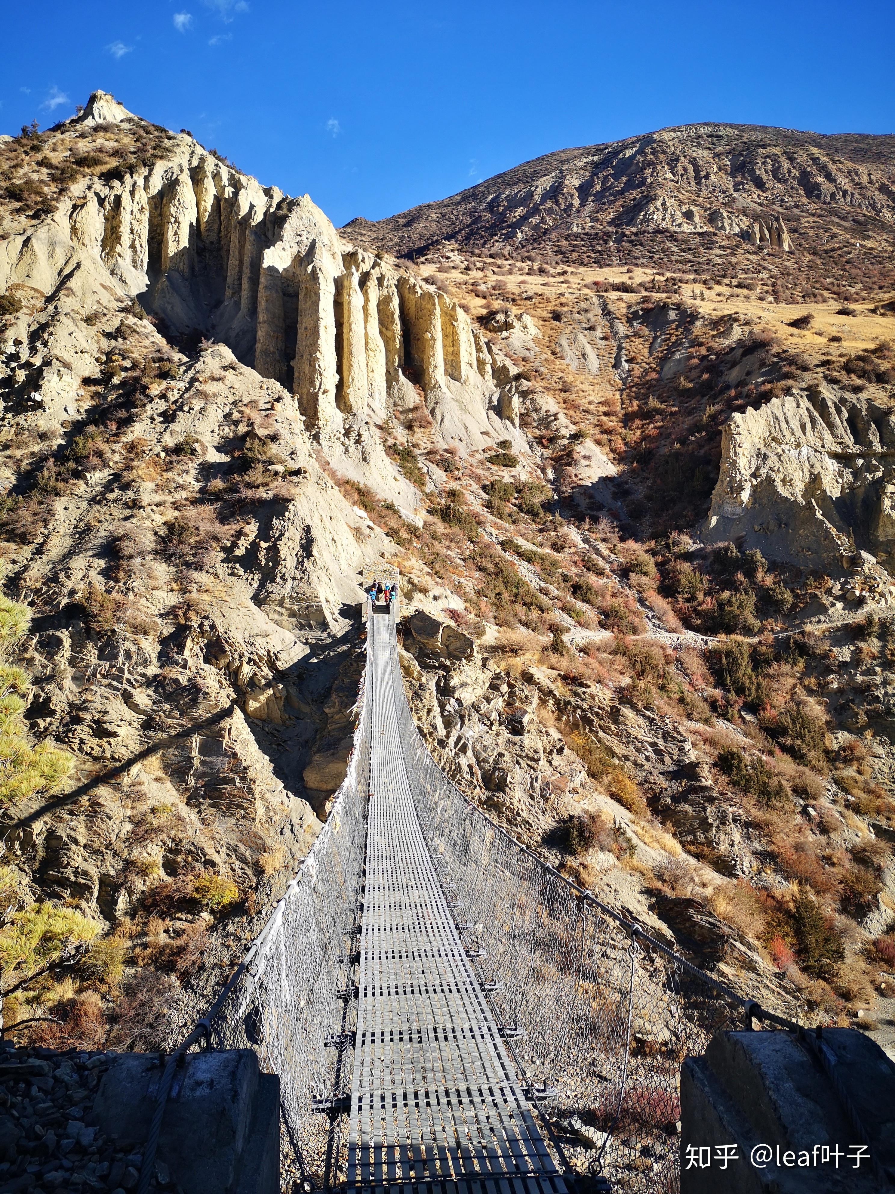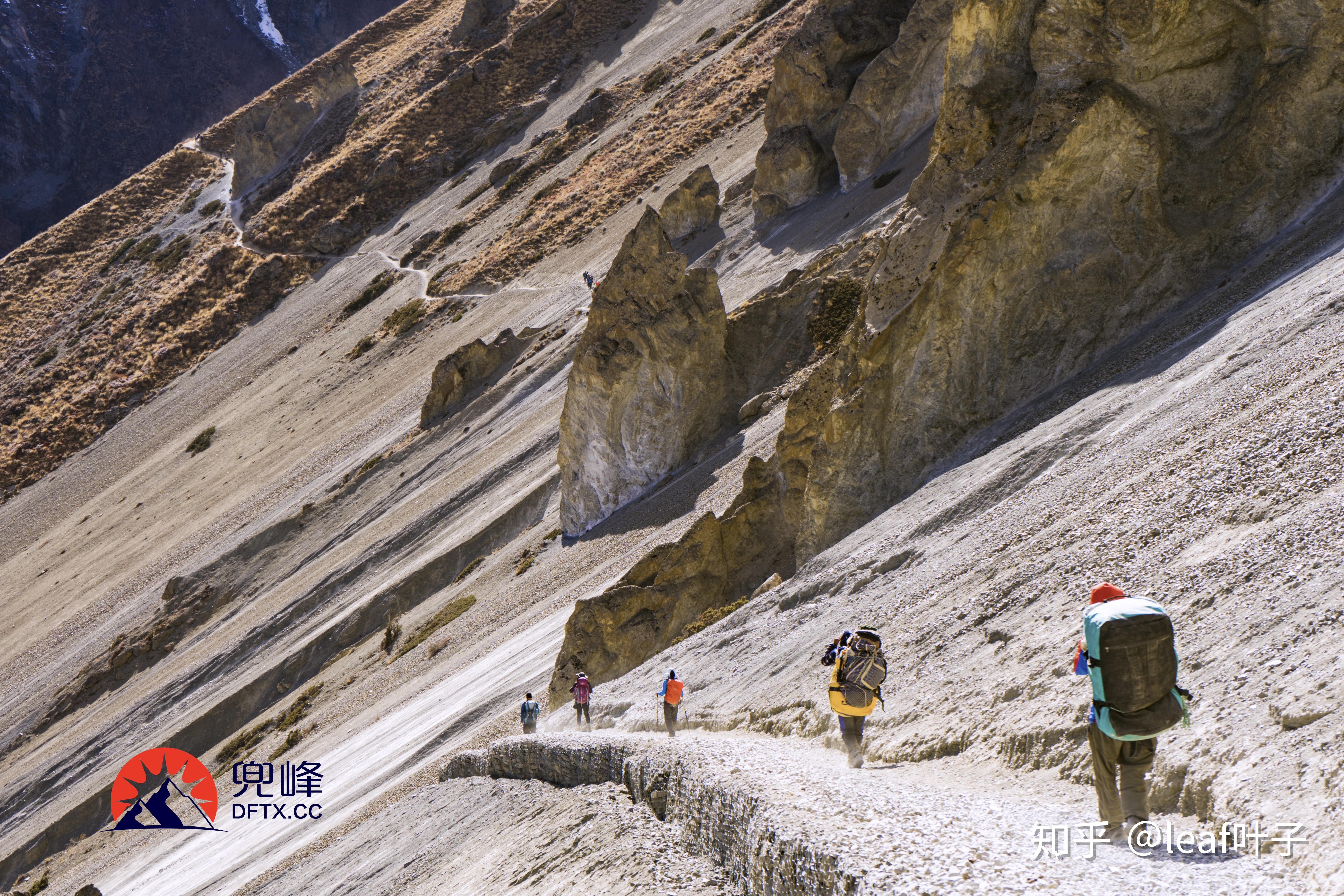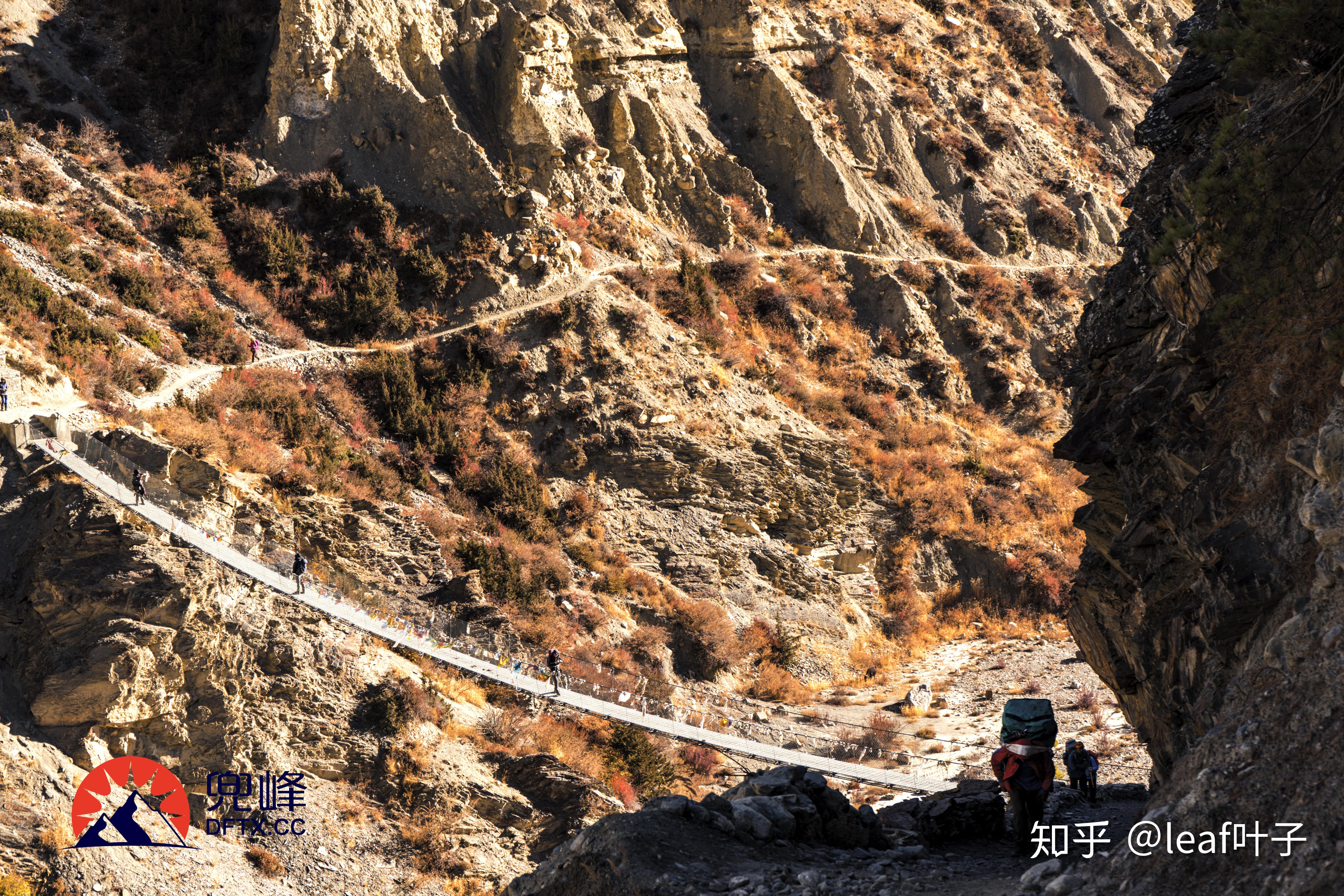 在持续的向东行进后,某个拐角转之向北。这里你可以清楚的看到驼龙河Thorang Khola和Marsyangdi河交汇以及河谷里的马南镇,最高点后是持续的下坡,穿过一片树林下到河边过吊桥后就差不多回到了ACT的主线上。牦牛场Yha Kharka(4050m)再向上是莱德Letdar(4200m),驼龙山脚Thorang Phedi(4450m)和驼龙高营地Thorang High Camp(4850m)。在高海拔地段,建议大家每天尽量安排短距离的徒步活动,慢慢走以防高原反应。