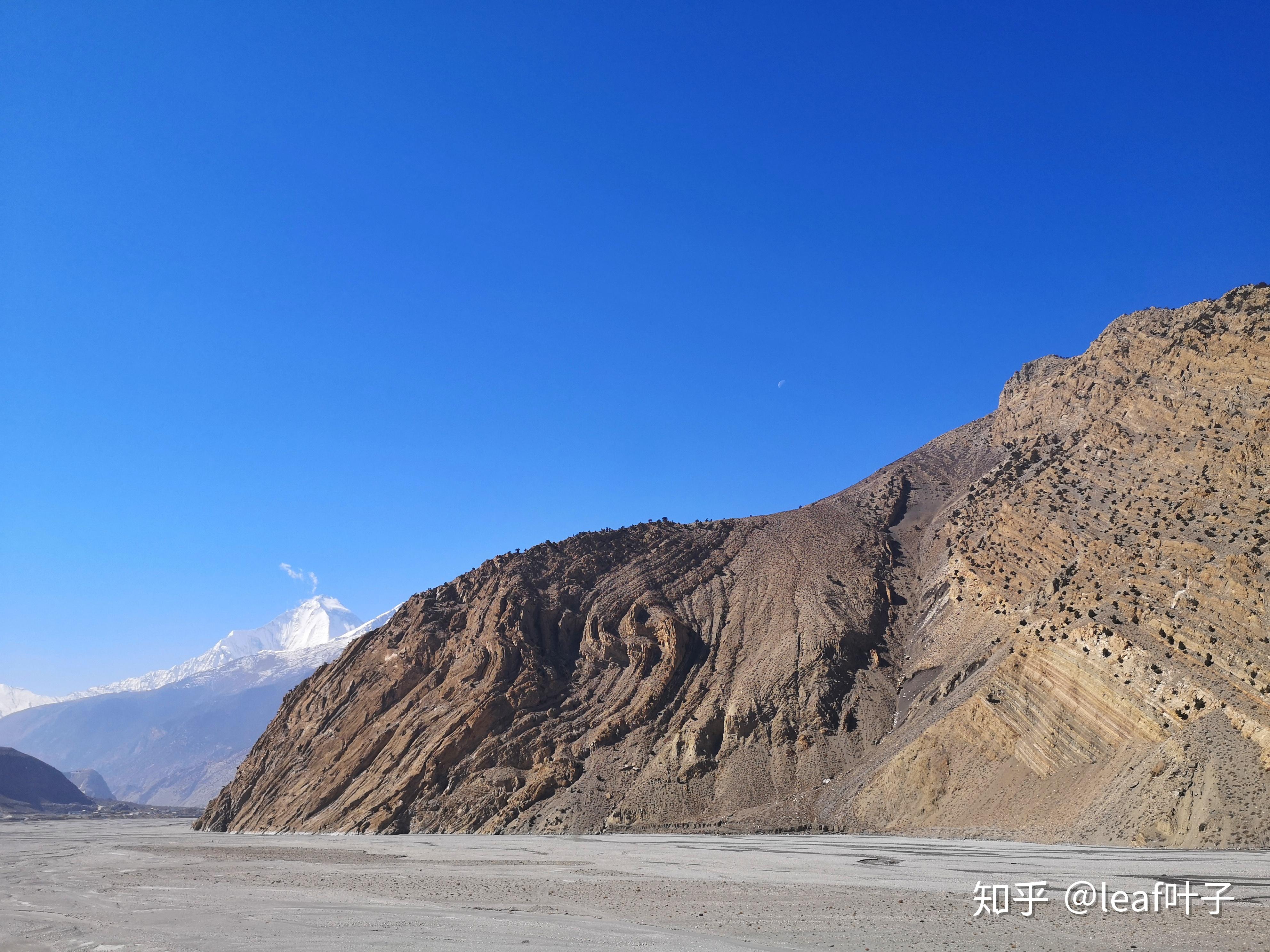 行程已过大半,既然最难最高的垭口已经完成,接下来可以闲庭信步。今晚的目的地是位于Mustang地区的穆克提纳斯Muktinath,坐在半山腰向下望去,向导指着对面告诉我一个词“desert(荒芜的)”。山体风化的严重,当风起时,漫天黄沙打着旋的飞舞。从垭口下到穆克提纳斯是近1600m海拔的下降,注意佩戴好护膝哦~ 因为这巨大的海拔拔升,所以很少看到有反向从穆克提纳斯爬升到驼龙垭口的旅行者。再向下逐渐回到了人类文明世界,电线、JEEP车等又进入视野中。
