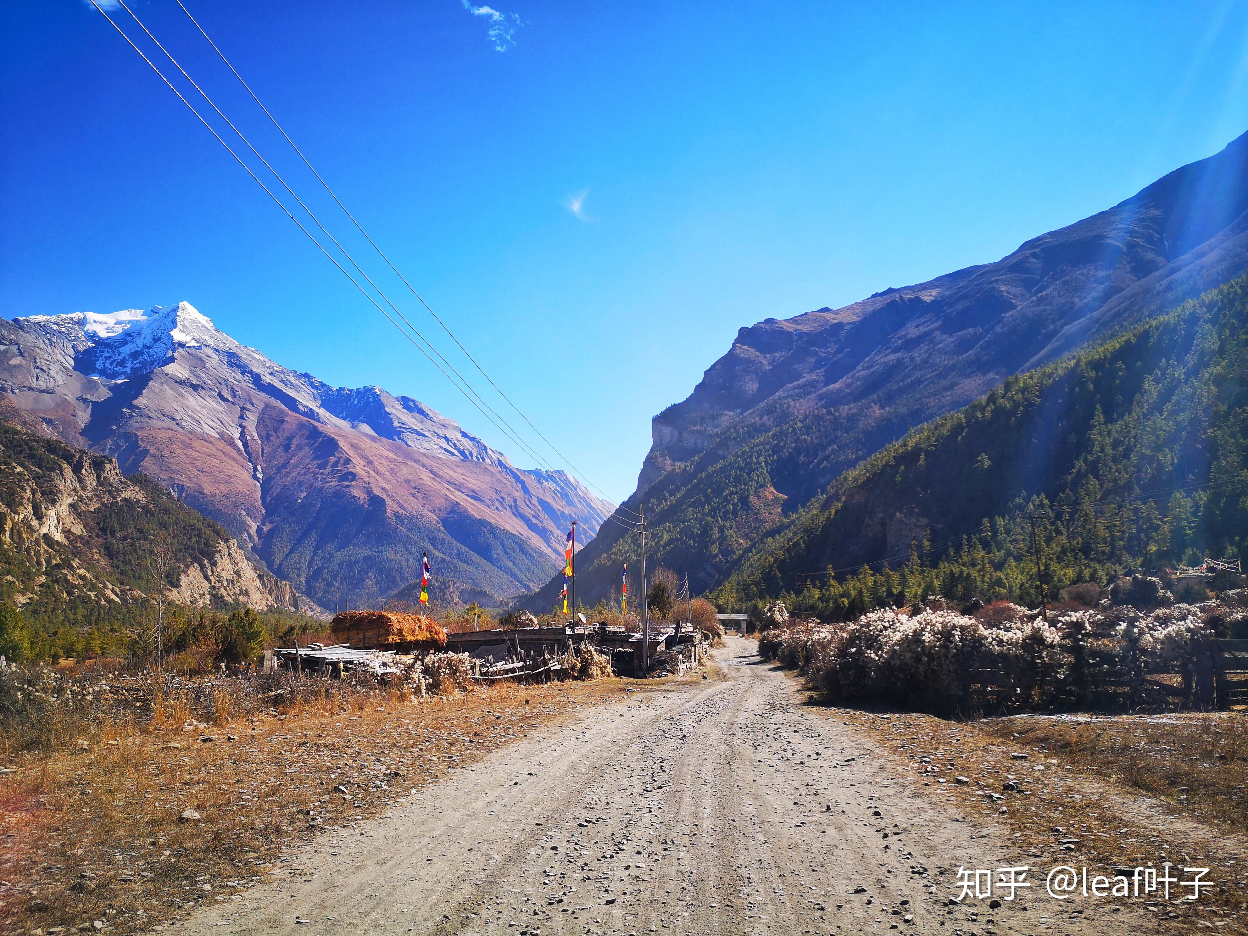 今天选择了坐车,车子在河谷和乡村土路中灵活切换着,风景也随之变换。随着车辆向南行驶,道拉吉里峰逐渐隐在山谷后面,安娜普尔纳1号峰出现在左侧。到达Marphy——著名的苹果之乡,喜欢的可以买上一袋苹果。森林、河流又回到身边,后半段手机终于有了信号,抓起手机赶紧发朋友圈分享着这一路的美景。