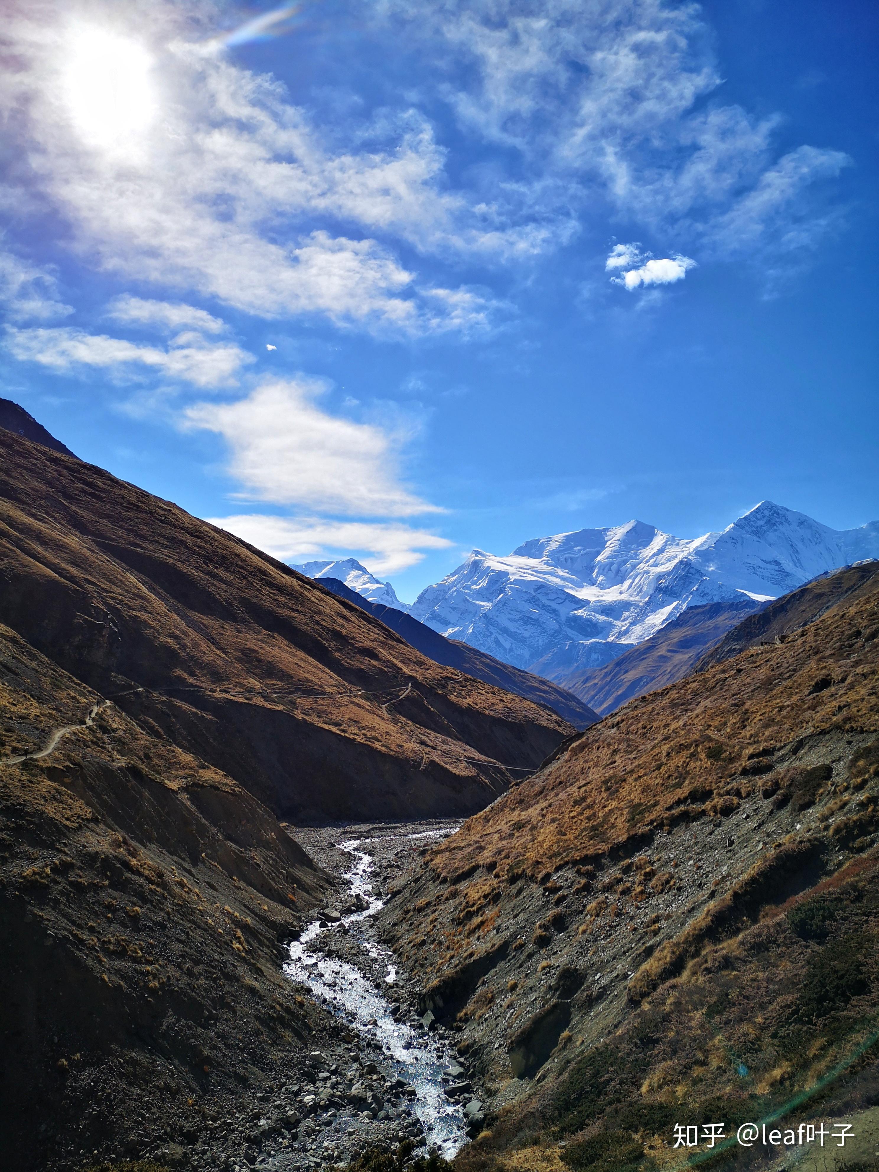 马南的休整意为着后几日的前方高能预警,这几天将在海拔4000m以上的地区度过。要注意保暖,调节呼吸,walk slowly。踏着朝阳,呼吸着微冷的空气,我们又出发了。整个小村子好像还没有苏醒,路过村子里的转经筒,只见他们左手轻捻佛串,伸出右手拨动着经筒的转盘,嘴里念念有词,顺时针轻步走着。