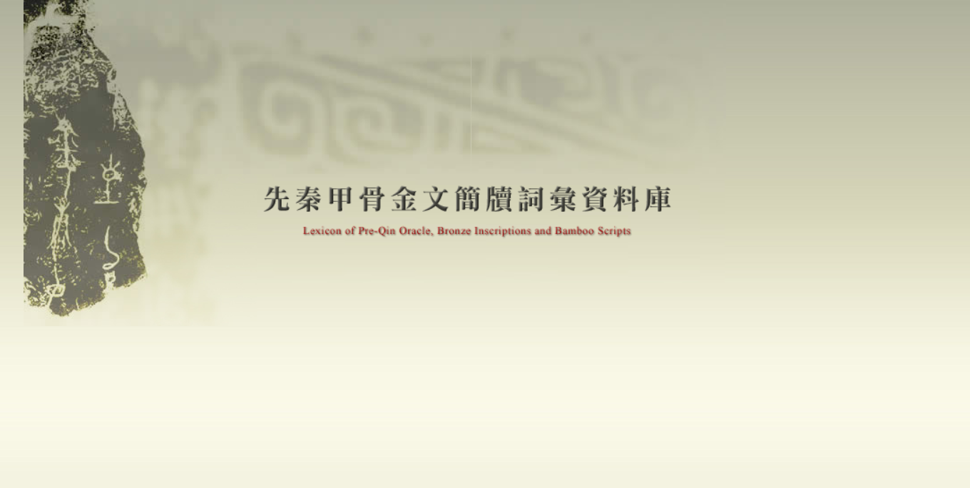 「先秦甲骨金文简牍词汇库」分为词汇检索与全文检索,收录甲骨文、金文、简牍三种文字材料,依词类、材质做为搜寻条件,展示词汇的词性、时代、书目来源、释文段落。