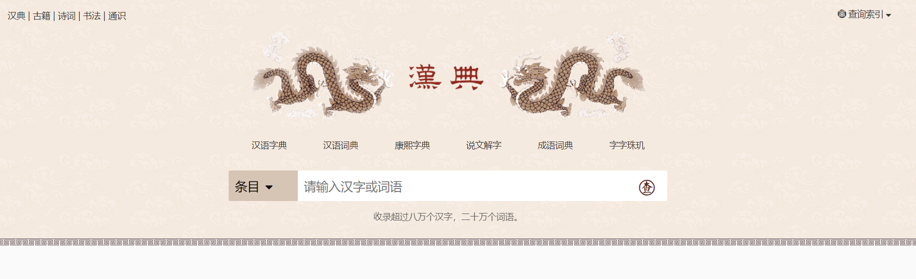 汉典始建于2004年,是一个有着巨大容量的字、词、词组、成语及其他中文语言文字形式的免费在线辞典。汉典网与汉程网在功能上较为类似,但与汉程网相比较而言,无论是排版,还是内容的丰富性来说,汉典网都略占一些优势,汉典提供字义解释、康熙字典、说文解字、音韵方言、字源字形等方面的解读,但相比汉程网也有个小缺点,就是有广告,二者都有的缺点就是都存在有放错字的现象,但瑕不掩瑜,汉典确实挺好用。