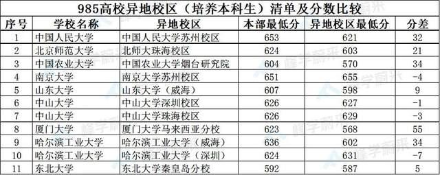 那么,名校异地校区到底能不能捡漏?我(让同事)连夜整理了一份985院校的异地校区清单及录取分数线差距,供大家参考。学校清单按照以下标准进行筛选: