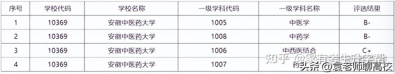 在第四轮学科评估中,安徽中医药大学有4个学科上榜,其中中医学和中药学等两个学科被评为B-,具体可见下图。