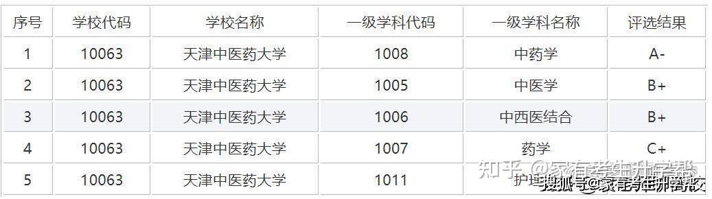 在第四轮学科评估中,天津中医药大学有5个学科上榜,其中最强的学科是中药学,被评为A-,中药学和中西医结合两个学科被评为B+,具体可见下图。